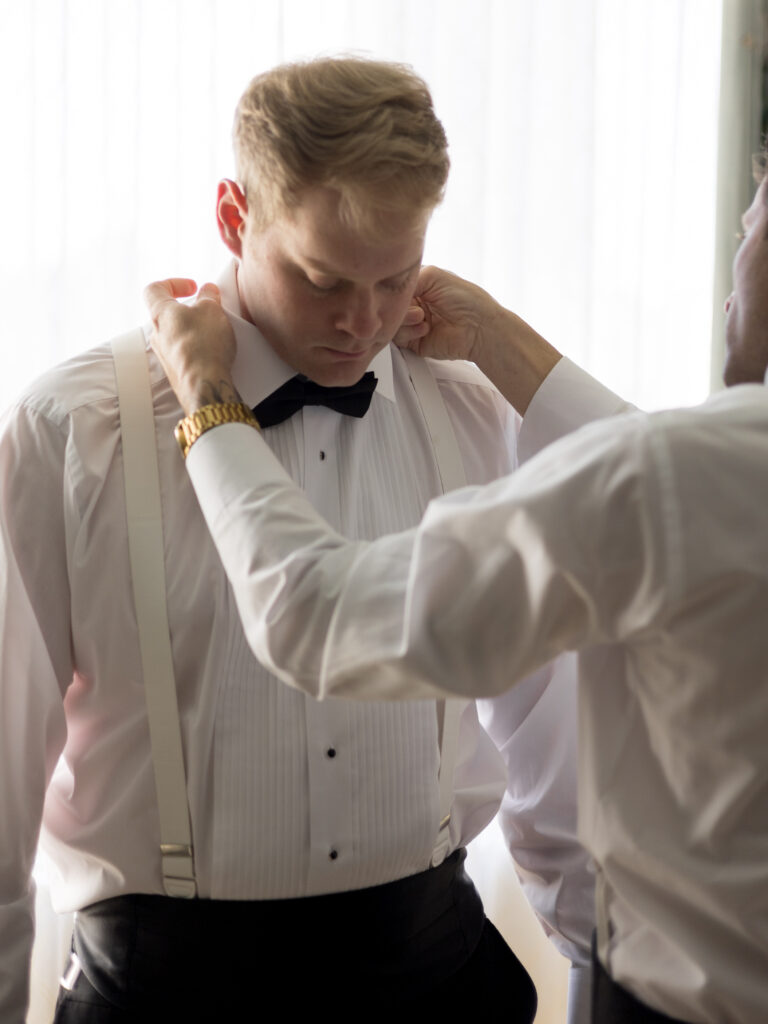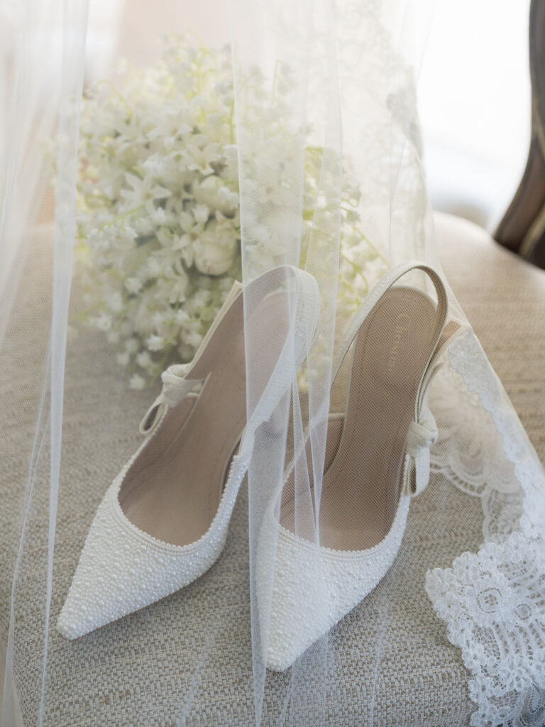 Neutral tones dominated, accented by lush white and blush florals from Bee’s Wedding Designs that added subtle warmth without overwhelming the sophisticated palette.